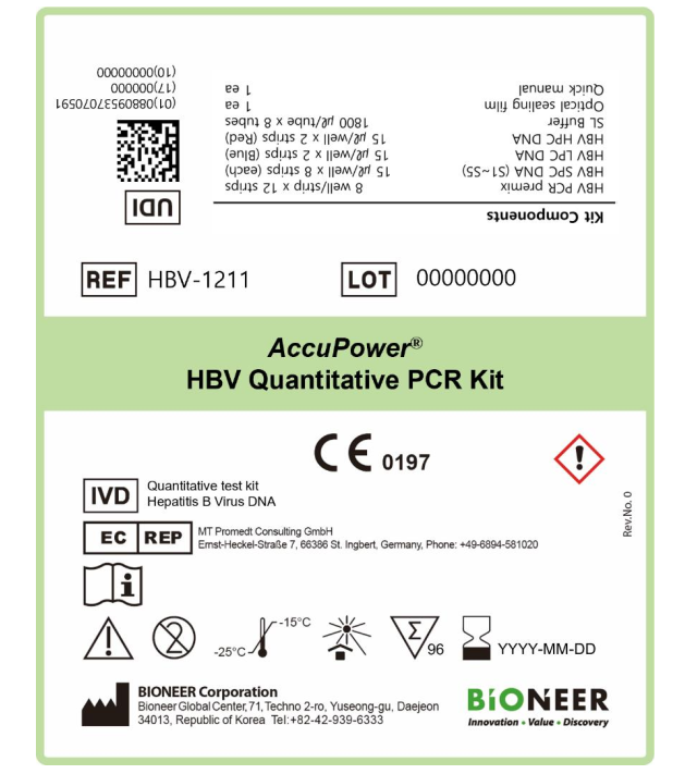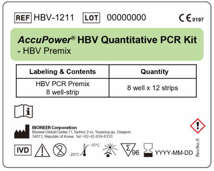 AccuPower® HBV Quantitative PCR Kit là một bộ kit chẩn đoán in vitro được thiết kế cho việc định lượng ADN của vi rút viêm gan B (HBV), trong các mẫu huyết thanh hoặc huyết tương người chống đông bằng EDTA, bằng phương pháp Real-Time PCR trên hệ thống ExiStation™ Universal MDx.