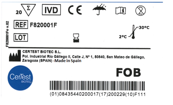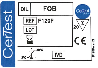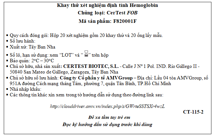 CerTest FOB dạng khay thử là xét nghiệm miễn dịch sắc ký màu để xét nghiệm phát hiện định tính Hemoglobin (hHb) người trong mẫu phân.
