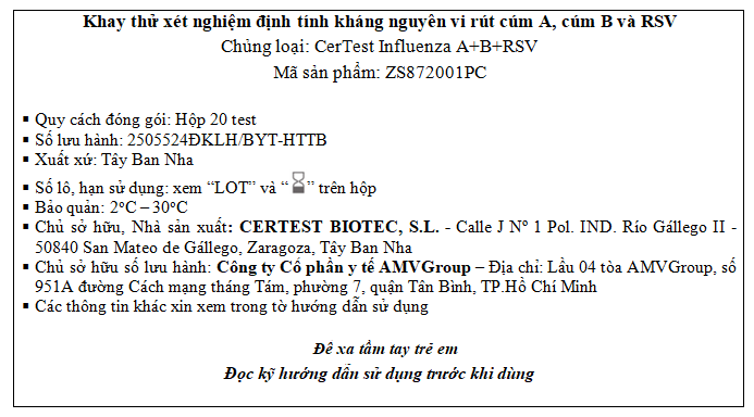CerTest Influenza A + B +RSV (20 test/hộp)