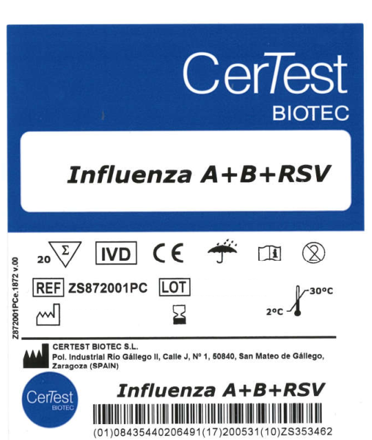 Xét nghiệm 1 bước dạng khay kết hợp CerTest Influenza A+B+RSV là kỹ thuật miễn dịch sắc ký màu để phát hiện định tính đồng thời cúm týp A, cúm týp B và vi-rút hợp bào đường hô hấp (RSV) từ những mẫu tăm bông mũi, mẫu dịch hút hoặc dịch rửa tỵ hầu. CerTest Influenza A+B+RSV là kỹ thuật đơn giản và là xét nghiệm sàng lọc với độ nhạy cao làm cơ sở cho việc chẩn đoán nhiễm trùng đường hô hấp do cúm týp A và cúm týp B và/hoặc nhiễm trùng đường hô hấp do vi-rút hợp bào RSV. Các triệu chứng lâm sàng các bệnh nhiễm trùng gây ra do nhóm không đồng nhất của các vi-rút hô hấp có thể rất giống nhau. Do đó, việc thực hiện xét nghiệm định tính này nhanh chóng xác định các vi-rút quan trọng nhất gây ra ảnh hưởng lớn.