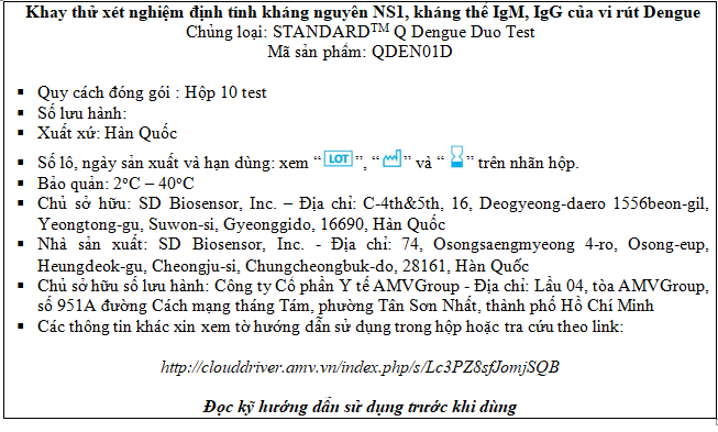 - Hãng sản xuất, nước sản xuất: SD Biosensor, Inc., Hàn Quốc