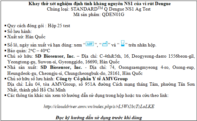 - Hãng sản xuất, nước sản xuất: SD Biosensor, Inc., Hàn Quốc