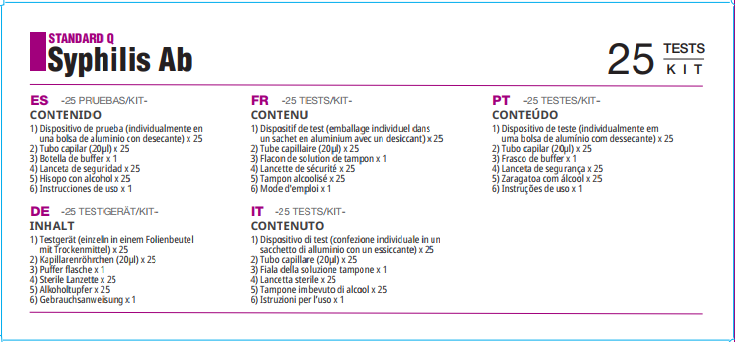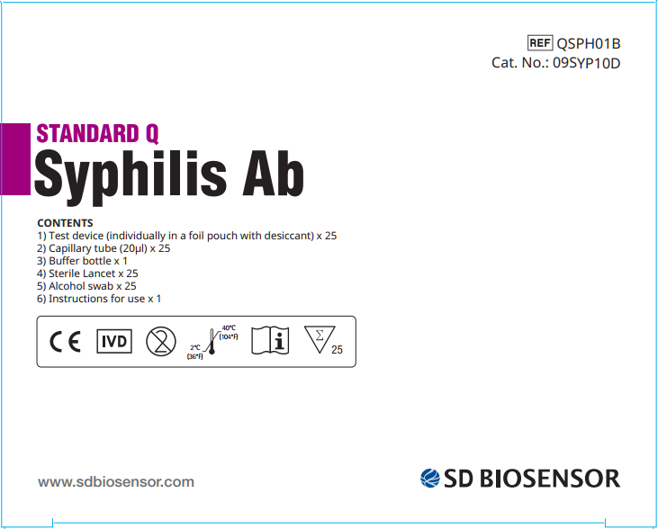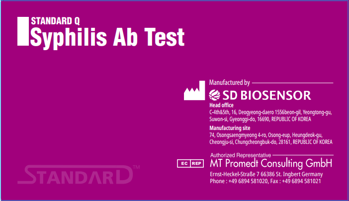 STANDARD™ Q Syphilis Ab Test là xét nghiệm miễn dịch sắc ký nhanh để phát hiện định tính kháng thể kháng giang mai từ huyết thanh, huyết tương hoặc máu toàn phần người.
