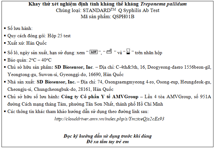 - Hãng sản xuất, nước sản xuất: SD Biosensor, Inc., Hàn Quốc